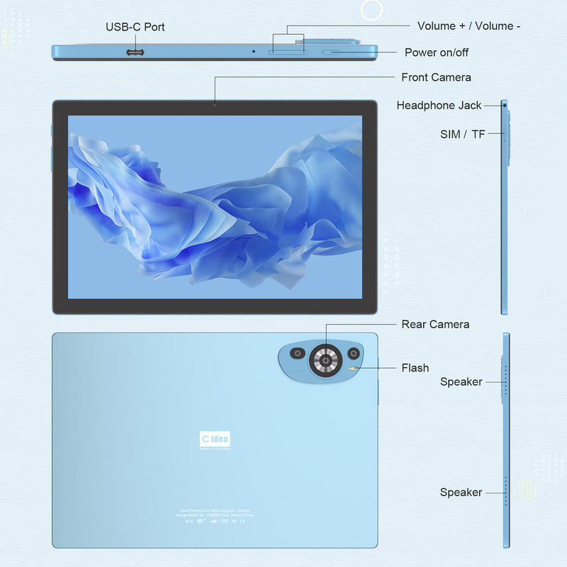 C Idea Android 14 Ekran dotykowy 10,1-calowy Tablety z długopisem CM8200plus Niebieski