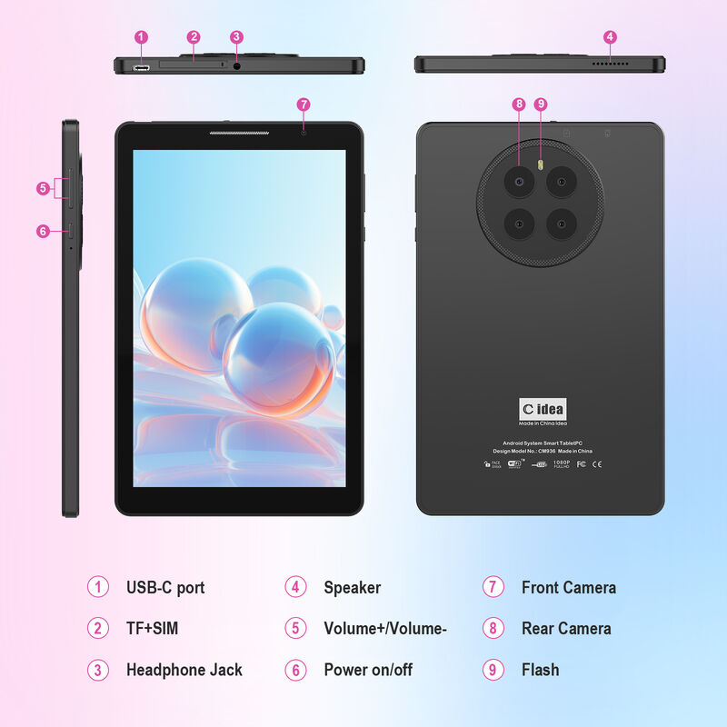 Opis produktu:Przedstawiamy C idea CM936, zaprojektowany, by podnieść cyfrowe doświadczenie do nowych szczytów.Ten tablet zapewnia bezproblemowe wielozadaniowość i płynne wykonywanie wszystkich zadań. Z przestronnym 8-calowym wyświetlaczem IPS i ARM Mali-400 MP2 GPU, cieszyć się oszałamiające wizualne i wciągające doświadczenia gry. Przechowywać wszystkie aplikacje, zdjęcia,i mediów z łatwością dzięki hojnym 512 GB pamięci EMMCPozostań podłączony w podróży dzięki szybkiemu Wi-Fi i opcjonalnej obsłudze 2G / 3G / 5G i uchwyć każdą chwilę przy pomocy tylnej kamery 8MP.,CM936 zapewnia wszechstronność i wygodę, gdziekolwiek się pan znajduje.rozrywka, i wszystko pomiędzy.