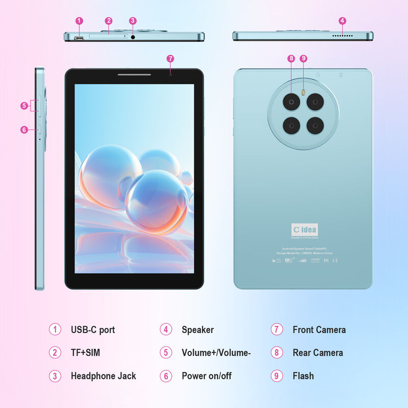 C Idea 9-calowy tablet z systemem Android 16, 8 GB RAM, 512 GB ROM, model CM936